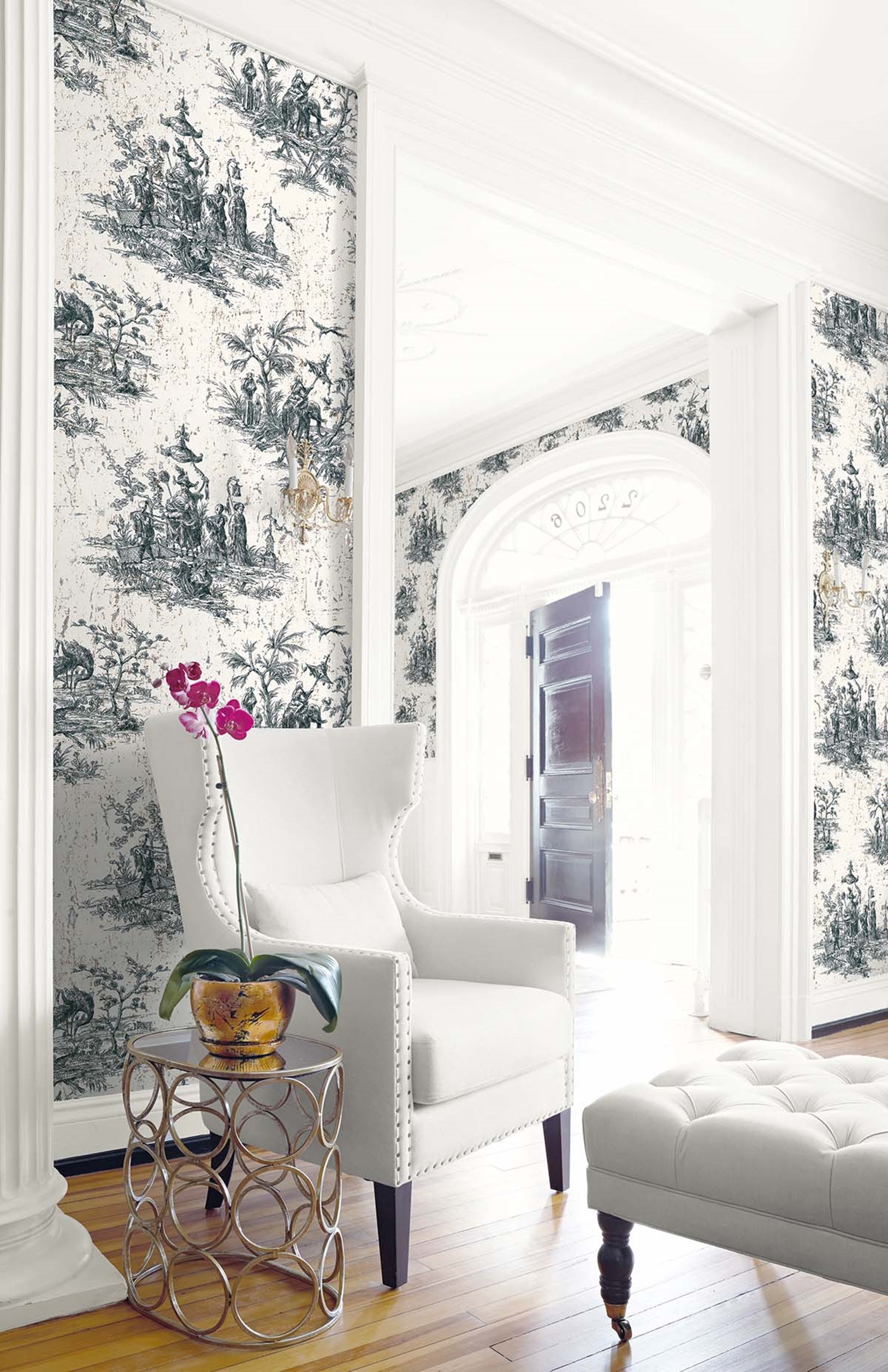 Carl Robinson 19 The Wall – Themes of Chinoiserie and Tropical. Chinoiserie offers a bridge between East and West with symbolic and beautiful scenes. The Tropical element celebrates nature with its lush foliage and vibrant spectrum of colours. Wallpapers and murals are offered on natural sisals, non-woven papers, linens and metallic grounds.
