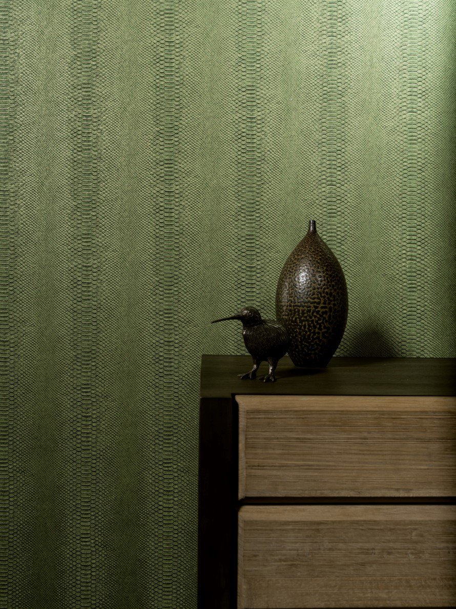 Another stunning collection of designer vinyl wallcoverings by Dieter Langer. Patterns include a snakeskin design taken from a real python, narrow triangles connected at their tips, wavy teardrops plus an elegant strié of matching structures. Available in cool, restrained tones of grey, silver and steel and homely natural white, warm cinnamon, fashionable copper and brass. These, together with the mysterious emerald greens and intense ruby reds make Ultra II outstandingly eye-catching!